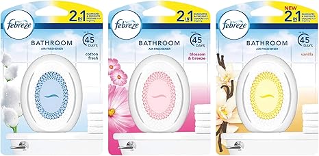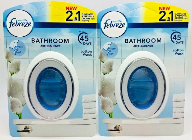 Febreze bathroom uses its unique odour cleartm technology delivering continuous freshness for up to 45 days so your bathroom is always guest ready. Twin pack twin pack blue. Febreze bathroom air fresheners provide a continuous burst of fragrance that eliminates odours and prevents them from lingering for up t0 45 days. Find many great new used options and get the best deals for febreze 2 in 1 bathroom small spaces air fresheners pick your fragrance at the best online prices at ebay.
