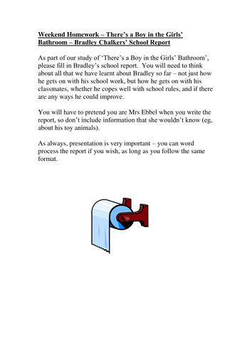 There s sure to be something to inspire you. The protagonist of there s a boy in the girls bathroomis bradley chalkers the oldest kid in the fifth grade. Have a look at our long list of learning activities for there s a boy in the girls bathroom by louis sachar. Lots of speaking and listening.